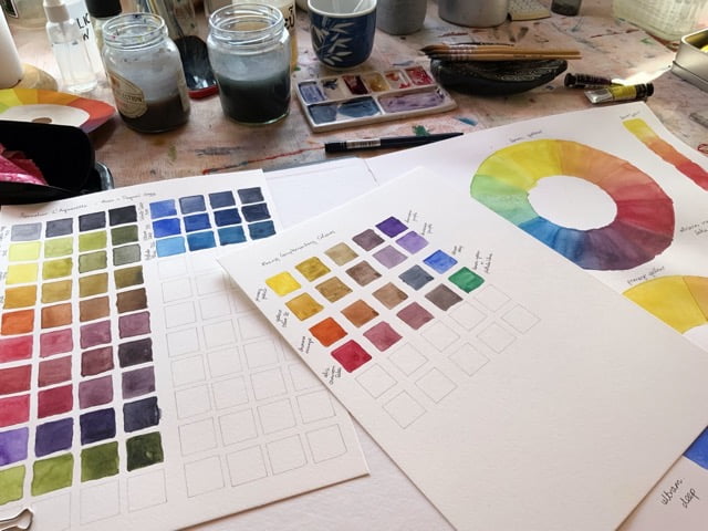 I made a colour chart using my Sennelier L’Aquarelle watercolours