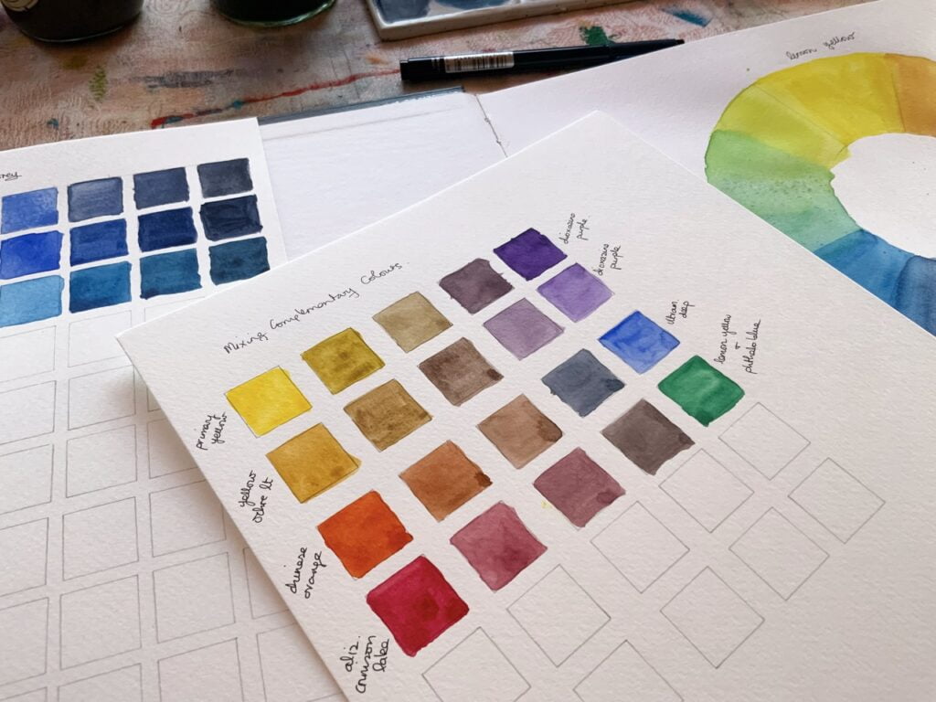 Then I also made a chart mixing complementary colours to get colourful greys.